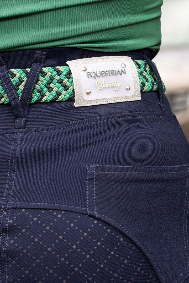 Voorzien twee zakken waarvan een met ritssluiting, twee kontzakken, riemlussen op de tailleband en een rubber badge met Equestrian Society.