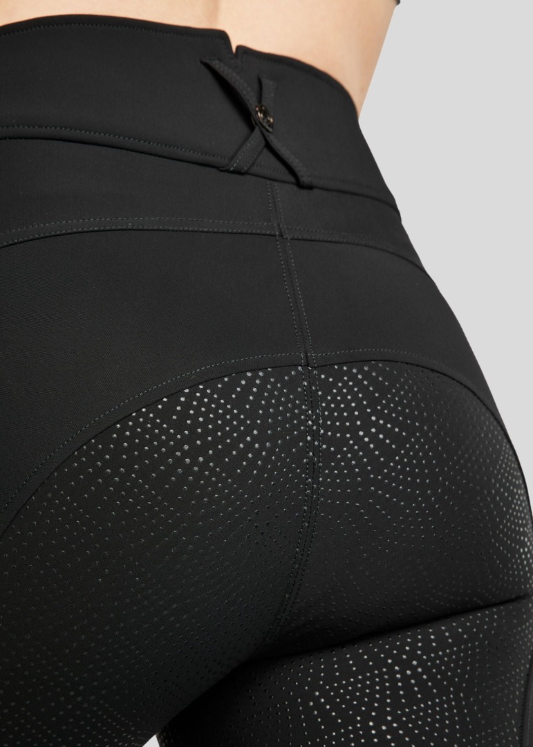 De rijbroek heeft een fullgrip met een prachtig patroon en zorgt voor een stabiele grip in het zadel en verhoogt het rijcomfort.