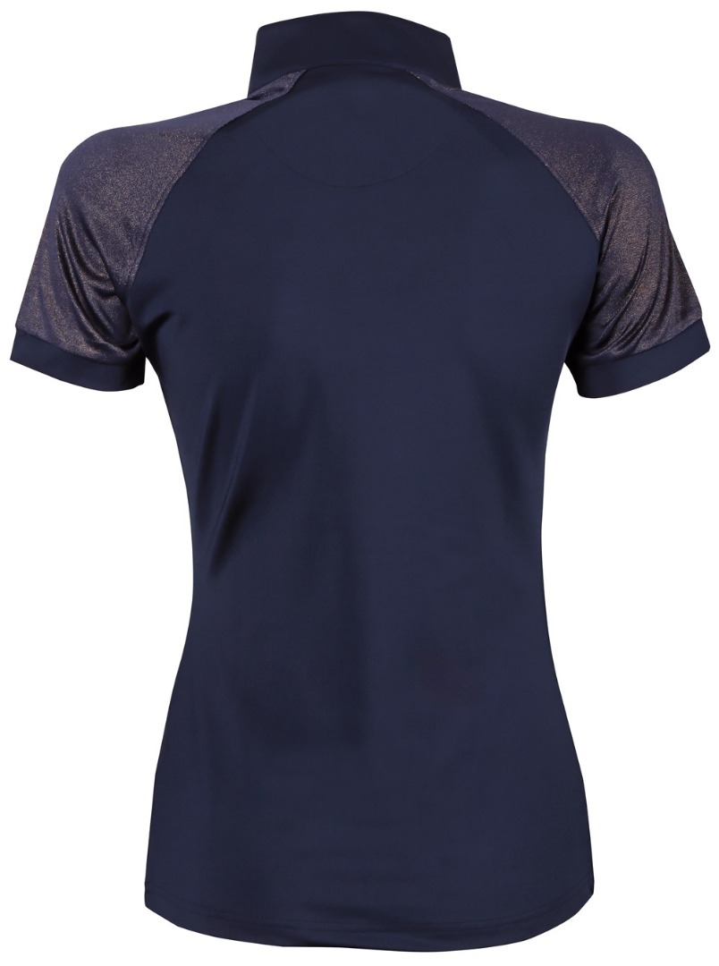 Tevens voorzien van een opstaande kraag met een korte ritssluiting, mouwtjes met een leuke goudkleurige print en op de borst een Equestrian Society logo met kristallen.