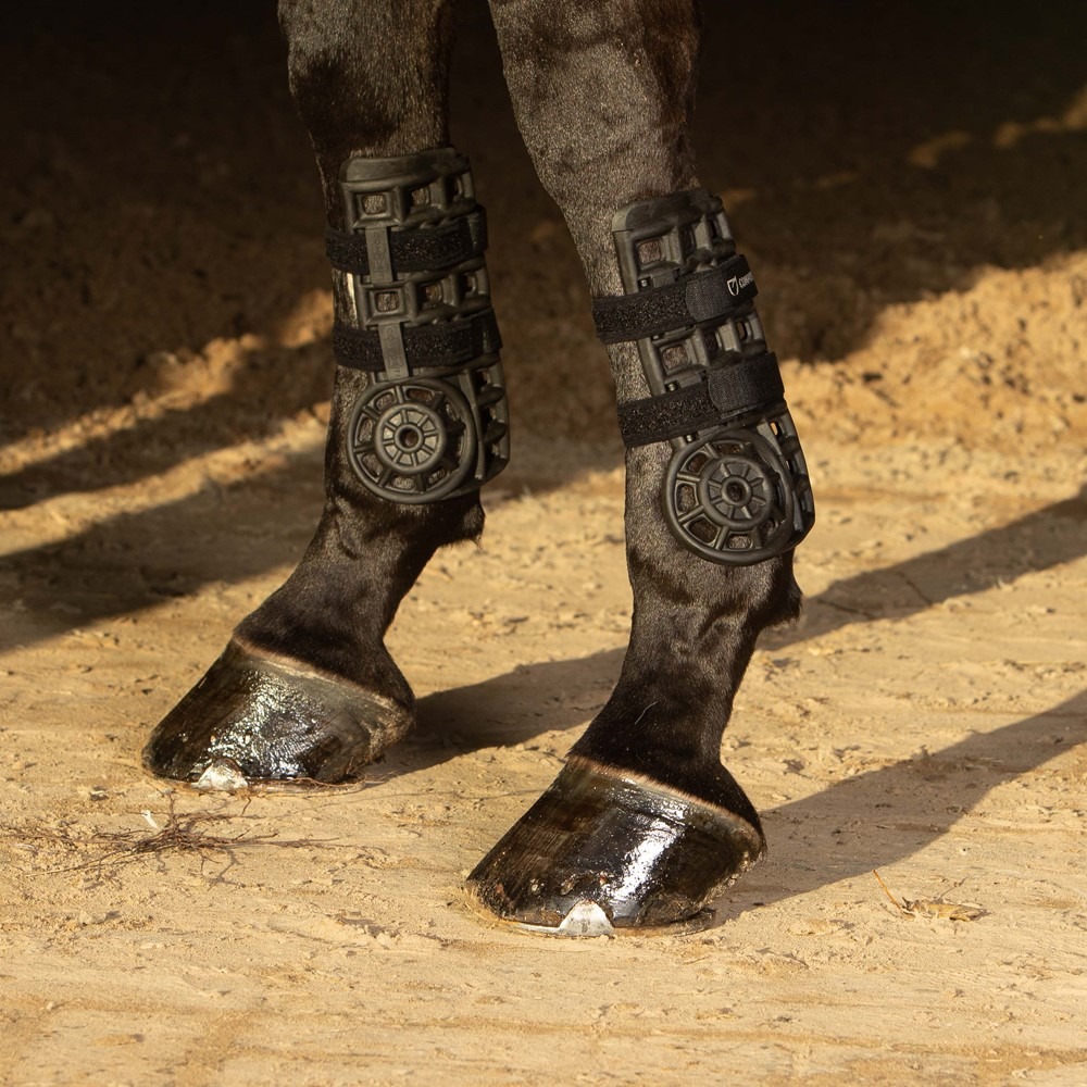 Het soepele, lichte en niet-absorberende materiaal van de peesbeschermers zorgt voor een perfecte bewegingsvrijheid van het paard en vermindert het risico op wrijvingswonden.