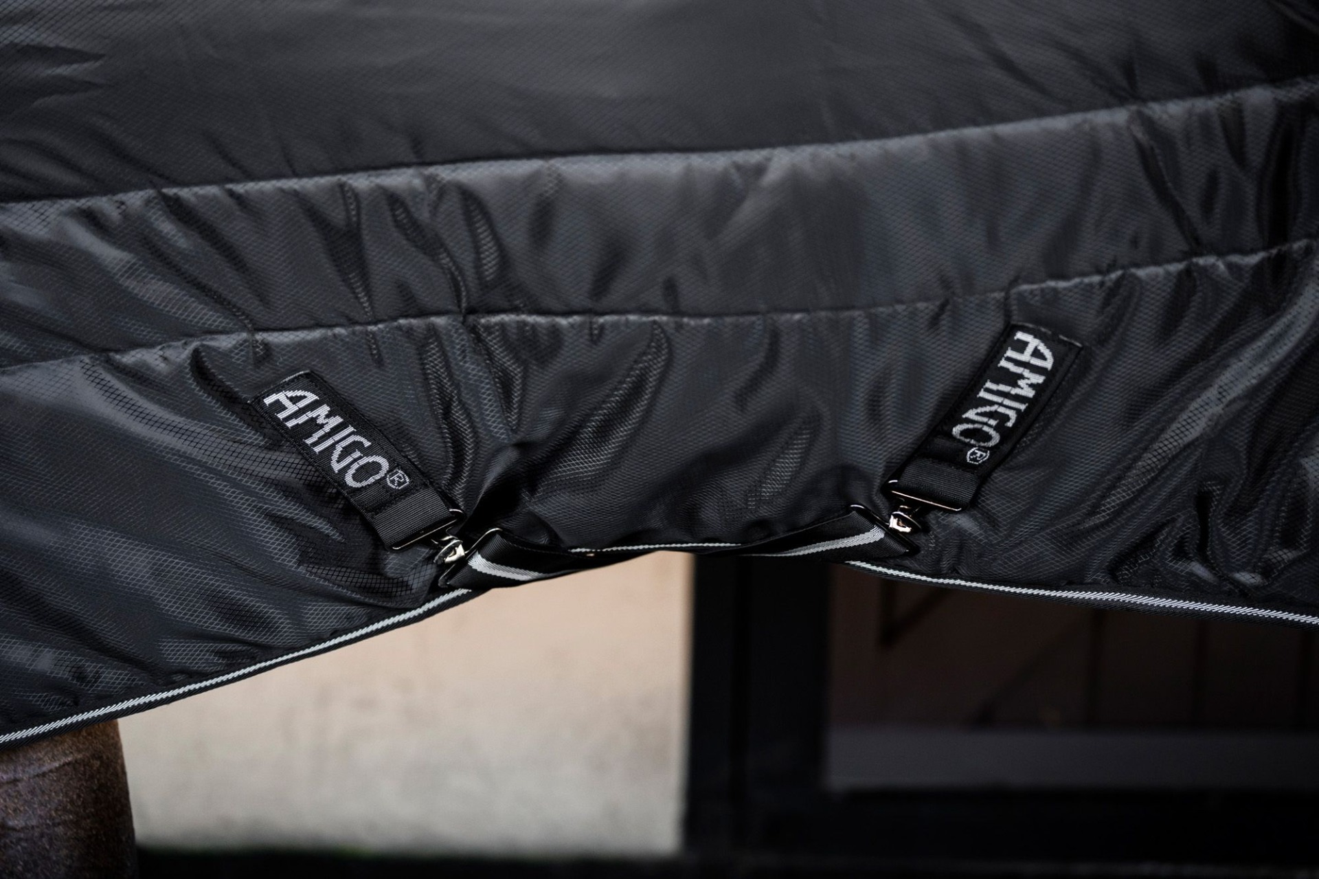 Daarnaast is de staldeken voorzien van twee dubbele rechte borstsluitingen, kruissingels en een bilkoord.