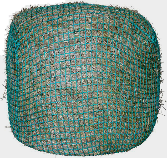 Hooinet dat speciaal is gemaakt voor volledig ronde balen en dat ervoor zorgt dat het hooi langzaam opgenomen wordt.